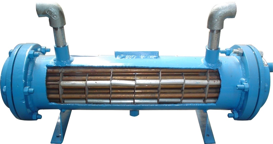 کندانسور پوسته و لوله متشکل از یک دسته لوله افقی موازی است که درون آن­ها سیال داغ جریان داشته و در طرف پوسته- آب جریان دارد. لازم به ذکر است که ترتیب قرارگیری سیالات گرم و سرد درون پوسته و لوله قابل تغییر است. از طریق تبادل حرارت بین سیالات گرم و سرد- به تدریج سیال داغ گازی شکل از حالت گاز به مایع تغییر فاز داده و تقطیر می­شود. کندانسورهای آبی پوسته و لوله در چرخه یک چیلر- عملیات تقطیر گاز مبرد را به وسیله تبادل حرارت با آب ورودی که از برج خنک کننده تغذیه می­گردد، به عهده دارد.