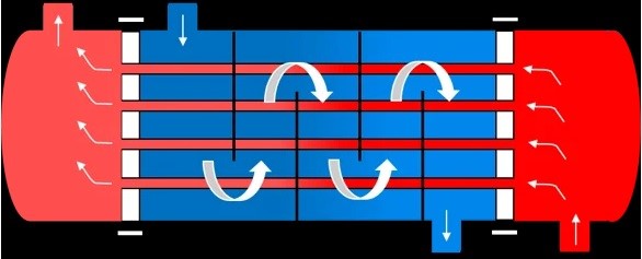 1-هر اواپراتور پوسته و لوله، از تعدادی لوله که توسط یک پوسته بیرونی که به دور آن ها قرار دارد، تشکیل می‌شود. در این نوع اواپراتور، درون لوله­ها یک سیال کم فشار جاری است. در اطراف این لوله­ها نیز یک سیال دیگر (گاز یا مایع) با دمایی بالاتر حرکت می‌کند. به سبب وجود اختلاف دما بین دو سیال، انتقال حرارت رخ داده و سیال کم فشار در اثر جذب حرارت از سیال بیرونی تبخیر می‌شود.